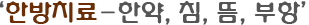 환자의 상태에 맞는 처방을 통해 한약을 처방하여, 어혈로 인한 염증을 다스려 통증을 완화시켜줍니다.